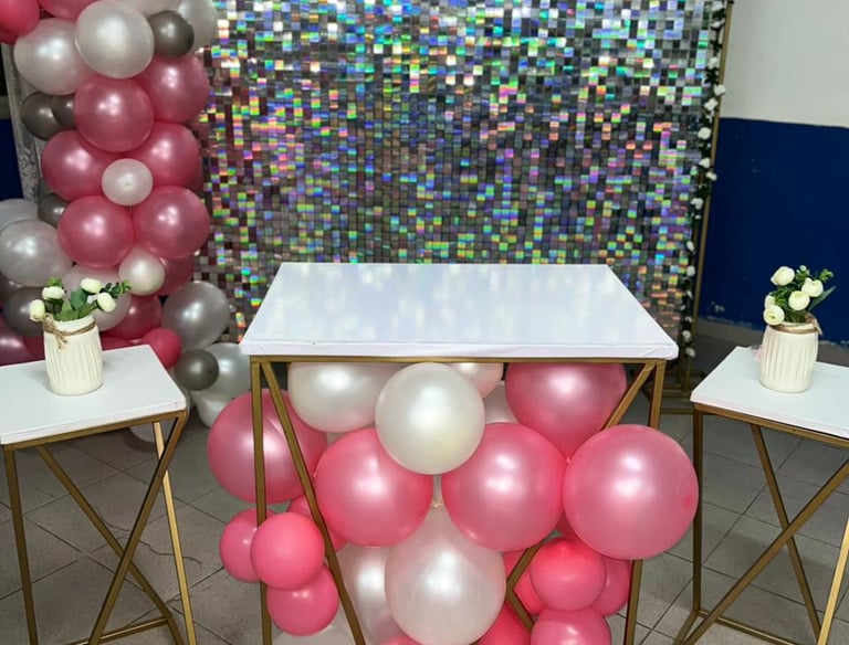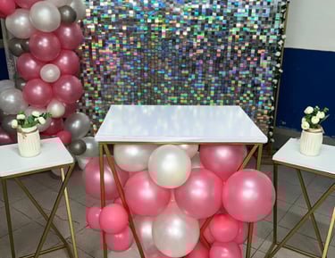 Nuestro Shimmer Wall aporta brillo, estética y un look completamente sofisticado para cumpleaños, fotos y eventos especiales.